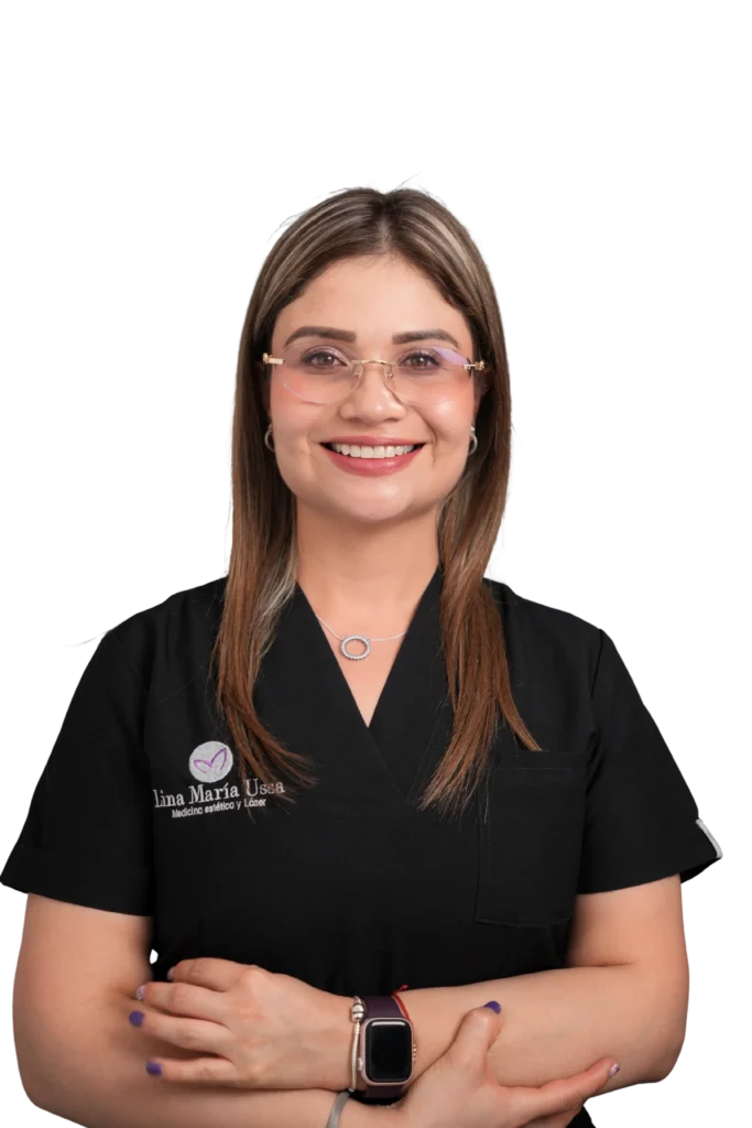 ¡Hola! Soy LINA MARÍA USSA Médica de la Universidad de Boyacá. Especialista en Medicina Estética de la Universidad del Tolima. Diplomado en aplicaciones de láser para especialidades médico quirúrgicas de la Universidad Nacional. Certificada por el Dr Sino Bay Aguilera en Curso de rellenos dérmicos regenerativos avanzados. Entrenamiento con el Dr. Richard Bensimon en Peeling profundo.